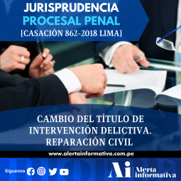 CAMBIO DEL TÍTULO DE INTERVENCIÓN DELICTIVA. REPARACIÓN CIVIL [CASACIÓN 862-2018 LIMA]