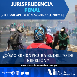 15 de diciembre.- Corte Suprema de Justicia de la República mediante Recurso de Apelación N.° 248-2022 / Suprema precisa que la acción típica –el hecho en su materialidad– consiste en el alzamiento en armas con uno de los fines antes indicados. Por tanto, se requiere de un alzamiento, esto es, de un levantamiento o sublevación dirigido contra el orden jurídico constitucional, contra los contenidos constitucionales que lo fundamentan, es decir, levantarse faltando a la obediencia debida a la Constitución y los poderes constituidos.