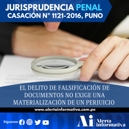 EL DELITO DE FALSIFICACIÓN DE DOCUMENTOS NO EXIGE UNA MATERIALIZACIÓN DE UN PERJUICIO [CASACIÓN 1121-2016, PUNO]