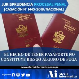 EL HECHO DE TENER PASAPORTE NO CONSTITUYE RIESGO ALGUNO DE FUGA [CASACIÓN N° 1445-2018/NACIONAL]