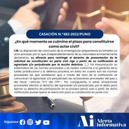 ¿EN QUÉ MOMENTO SE CULMINA EL PLAZO PARA CONSTITUIRSE COMO ACTOR CIVIL? [Casación N° 482-2022/Puno]