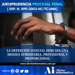 LA DETENCIÓN JUDICIAL DEBE SER UNA MEDIDA SUBSIDIARIA, PROVISIONAL Y PROPORCIONAL [ EXP. N. 1091-2002-HC/TC LIMA]