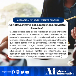 ¿LA NOTITIA CRIMINIS DEBE CUMPLIR CON REQUISITOS FORMALES? [APELACIÓN N.° 40-2022/ SELVA CENTRAL]