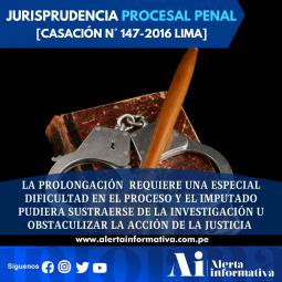 LA PROLONGACIÓN REQUIERE UNA ESPECIAL DIFICULTAD EN EL PROCESO Y EL IMPUTADO PUDIERA SUSTRAERSE DE LA INVESTIGACIÓN U OBSTACULIZAR LA ACCIÓN DE LA JUSTICIA [CASACIÓN N° 147-2016 LIMA]