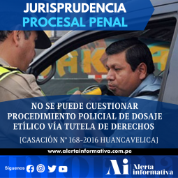 NO SE PUEDE CUESTIONAR PROCEDIMIENTO POLICIAL DE DOSAJE ETÍLICO VÍA TUTELA DE DERECHOS [CASACIÓN Nº 168-2016 HUANCAVELICA]