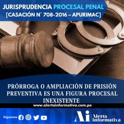 PRÓRROGA O AMPLIACIÓN DE PRISIÓN PREVENTIVA ES UNA FIGURA PROCESAL INEXISTENTE [CASACIÓN N° 708-2016 – APURIMAC]