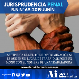 SE TIPIFICA EL DELITO DE DISCRIMINACIÓN SI ES QUE EN UN LUGAR DE TRABAJO SE PONE UN MONO CON EL NOMBRE DE UNA TRABAJADORA [RECURSO DE NULIDAD N° 69-2019, JUNÍN]