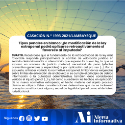TIPOS PENALES EN BLANCO: ¿LA MODIFICACIÓN DE LA LEY EXTRAPENAL PODRÁ APLICARSE RETROACTIVAMENTE SI FAVORECE AL IMPUTADO? [Casación N°1993-2021/Lambayeque]